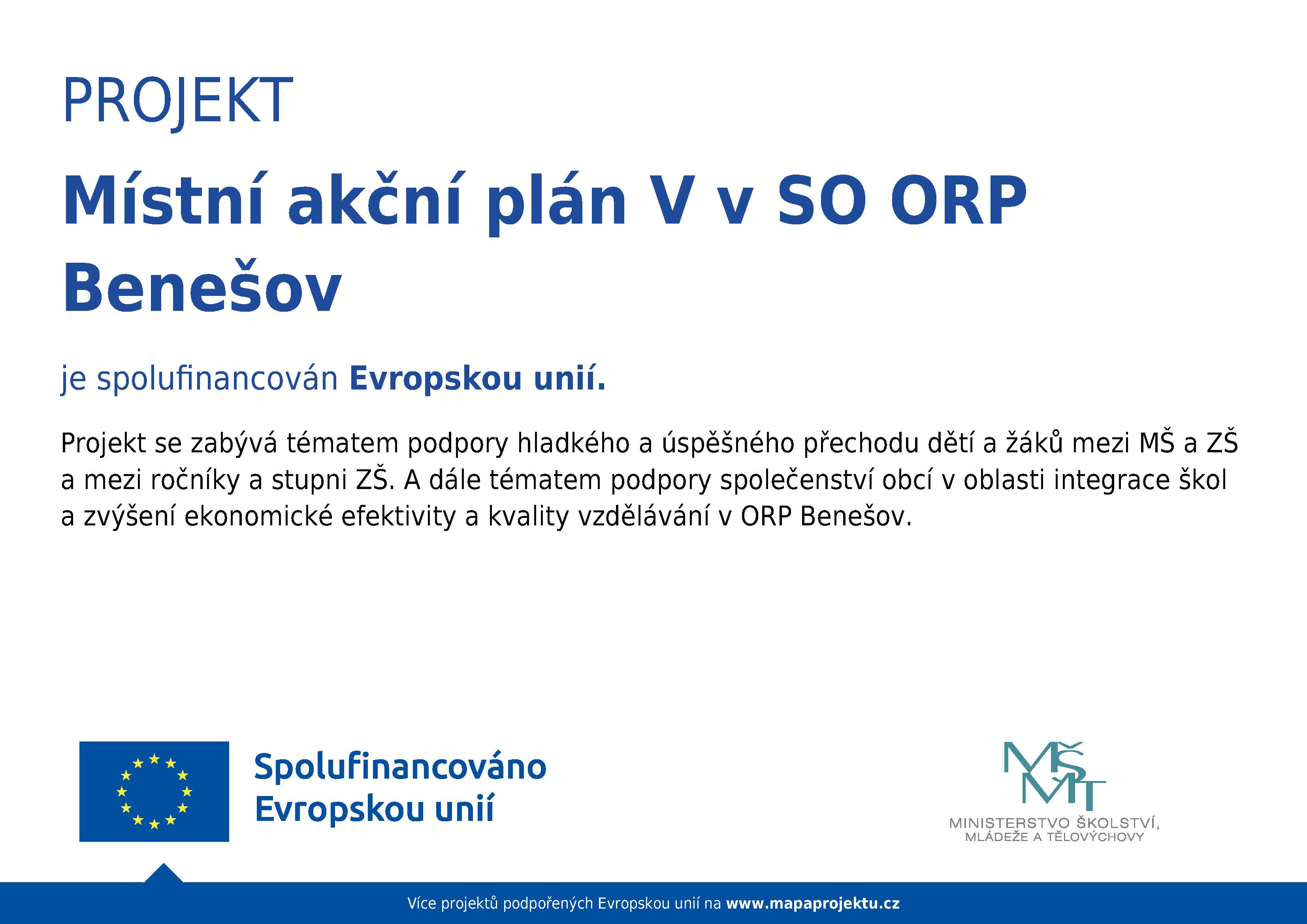 Projekt se zabývá tématem podpory hladkého a úspěšného přechodu dětí a žáků mezi MŠ a ZŠ a mezi ročníky a stupni ZŠ. A dále tématem podpory společenství obcí v oblasti integrace škol a zvýšení ekonomické efektivity a kvality vzdělávání v ORP Benešov. Přináší aktivity, které na tato témata reagují, a které vzešly z participativního procesu plánování v regionu.